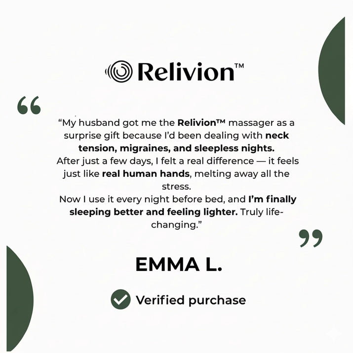 “I spend most of my day working from home and my shoulders were always tight. After just a few days with Relivion™, my neck feels looser and the constant tension is gone.”